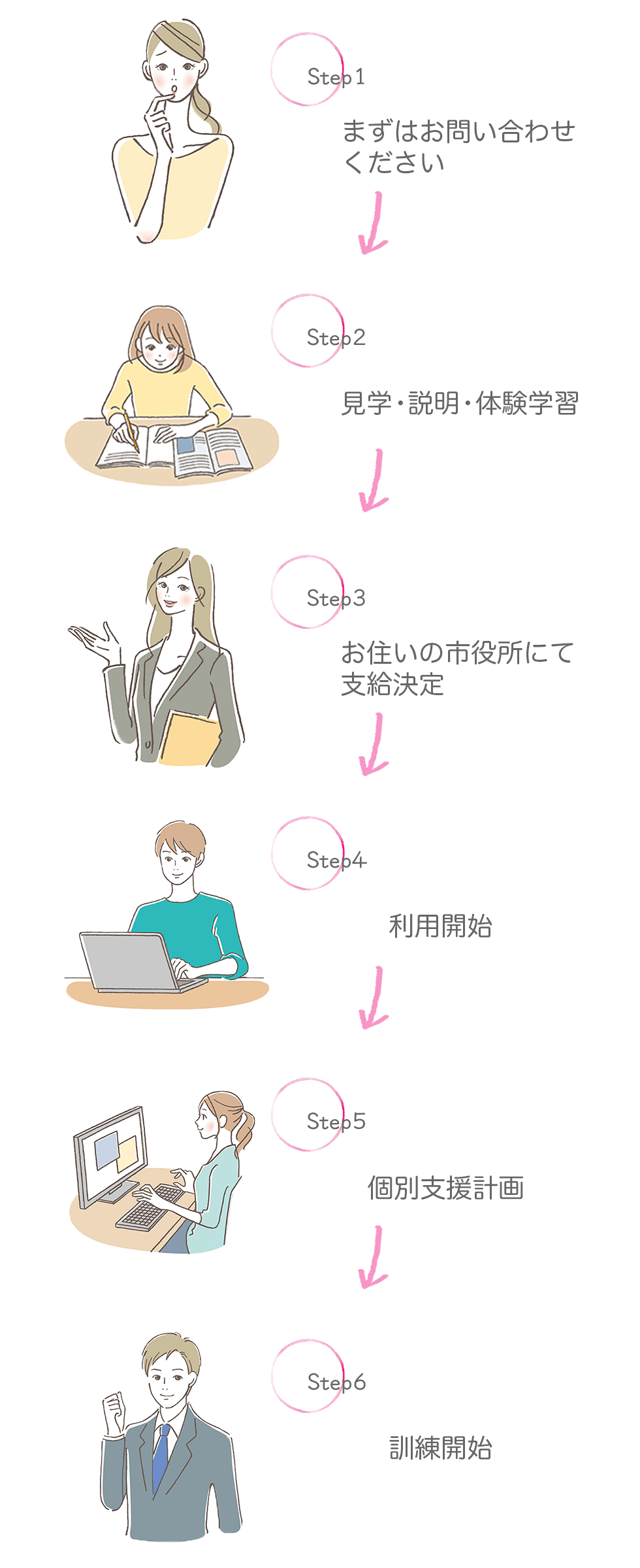 わたしたちは皆さまのそういった不安を少しでも解消したいと考えています。社会に出て自分らしく生活できるよう、全力でサポートさせていただきます。